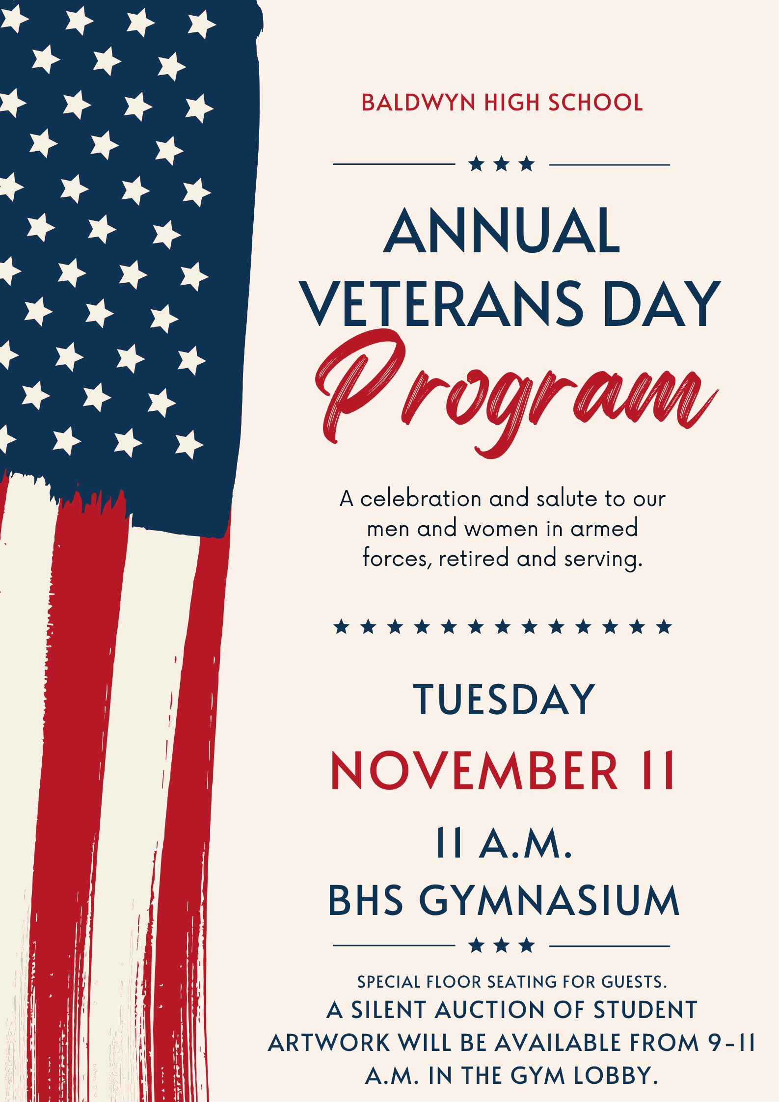 November 7 – Little League Basketball Forms Due November 11 @ 11 a.m. – BHS Veterans Day Program (Public invited) November 13 – Progress Reports November 21 – Ag Day (TBA) November 24-28 – Thanksgiving Break NO SCHOOL |