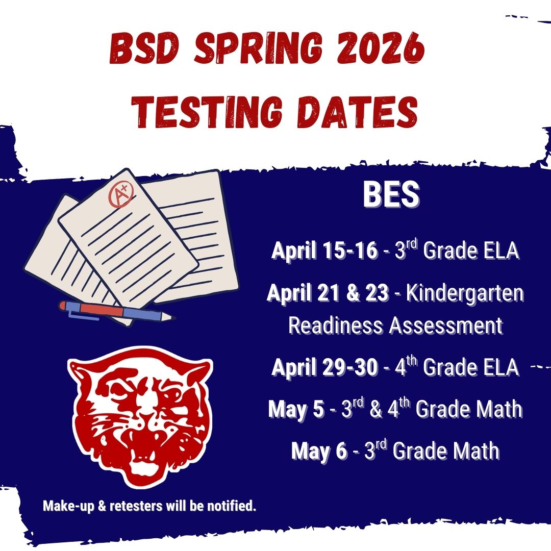 Report Cards – Thursday, March 26 BES Beauty Revue – Thursday, April 2 Good Friday Holiday No School – Friday, April 3 Make Up Day – Monday, April 6 |